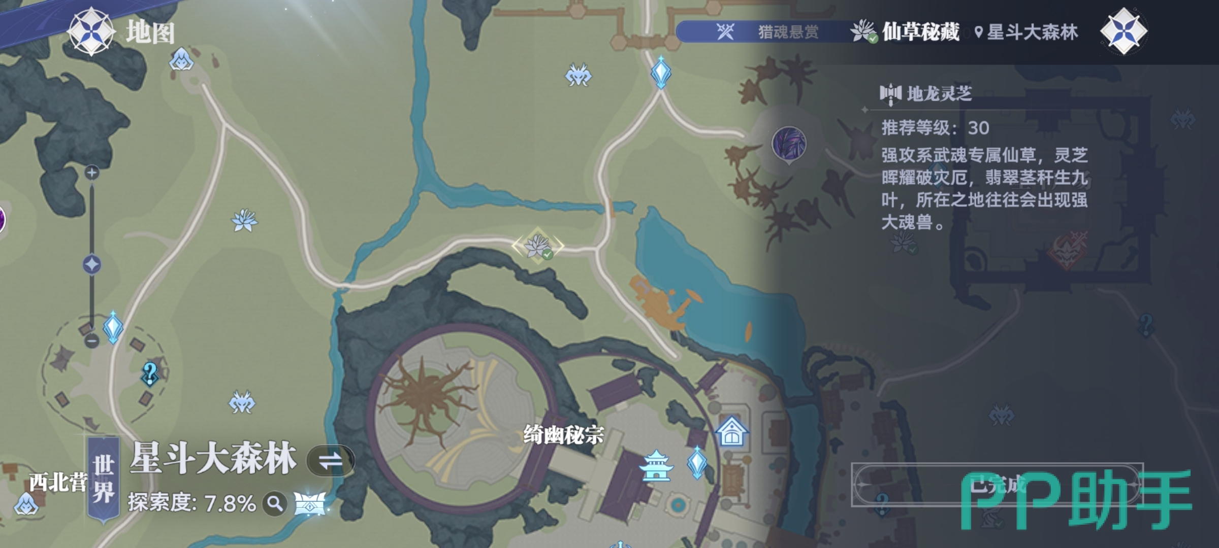 在星斗大森林区域,有两个地龙灵芝可供采集。第一个在琦幽秘宗的右上角区域,虽然离宗门本体有些距离,但只要沿着地图边缘走,还是比较容易发现的。