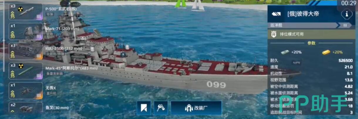 现代战舰中的彼得大帝号核动力巡洋舰凭借其高耐久和全面火力配置,成为战场上极具统治力的战舰之一。今天小编就分享一下现代战舰彼得大帝怎么样,为大家拆解一下这艘舰船的玩法以及操作细节,该舰拥有25000点血量,在游戏内属于顶级生存能力,能够硬扛三发鱼雷,使其在抗线作战中表现突出。