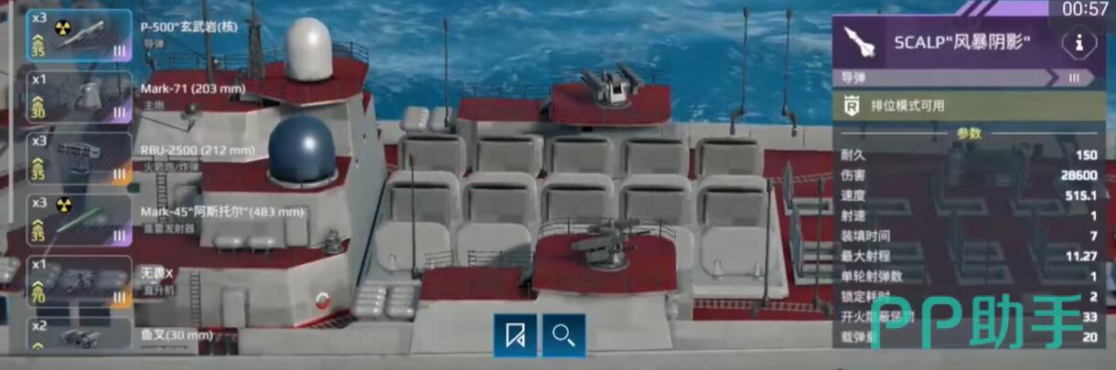 其武器系统涵盖导弹、主炮、火箭炮、鱼雷和防空系统,其中东风-17超视距导弹可实现10公里外的精准打击,而ASW反潜火箭则能有效应对潜艇威胁,配合灰背隼直升机可进一步提升反潜效率,武器布局方面需要大家提前适应一下,导弹采用倾斜发射而非垂直发射系统,主炮位于舰尾,火箭炮分布于舰首及两侧,鱼雷则在中后部。这种设计虽然增加了战术灵活性,但也要求玩家熟悉武器位置,避免因转向问题影响输出效率。