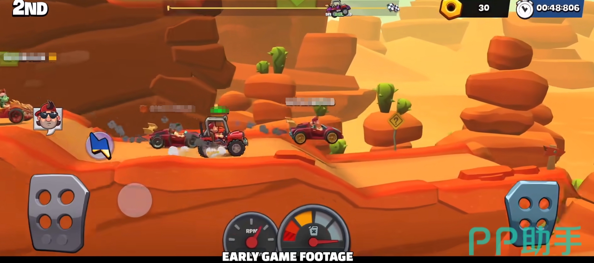 游戏开放了多人模式,可让多名玩家同屏进行竞技,并且各位不光会遇到实力强劲的对手,地图上的交互物还能让玩家们获得各式各样的道具,使用它们来为对手制造麻烦,例如能将对手的赛车炸翻跟头的飞弹等,这也是玩家们能顺利将比赛赢下来的方式。完成比赛后,还会有结果统计,让赢家能站在领奖台上接受欢呼。