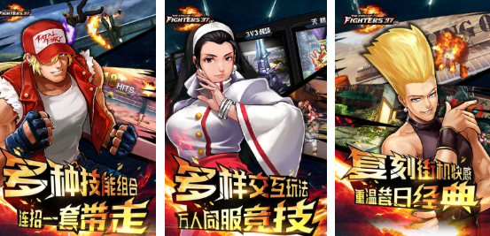 复古韵味比较足,玩家选择经典拳皇人物进行积极战斗。除了3V3这种模式外,玩家也可以在1V1PK中尽显拳皇人物风采,并且可以参与到多样的交互玩法当中。技能组合以手脚为主,必要的时候可以使用火焰进行远程攻击。在剧情的发展上,与大蛇一族的故事的还原度较高,玩家有较强的体验感。