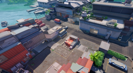 风曳镇:这一个是以小镇做为主题的地图,会分成5个不同的区域,还有两个包点,防守方的主要任务就是守住花园区域,还有居民区,如此就能有效拦截进攻方的推进。进攻方就可以选择从码头这边进攻,主要的特点就在于这里就会拥有复杂的高低差地形还有建筑物遮挡,还会有效提供多种不一样的战术选择,但同样也会增加被防守方打击的风险。
