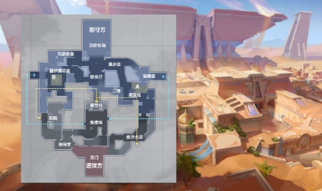 科斯迷特:这就是一张小型地图,主要是以沙漠作为主题。会有两个相连的小区,还有包点,防守方就可以选择快速的回防,那么在转点的时候也会具备比较明显的优势。进攻方也可以通过联合厅去完成转点,在这个过程中随时都有可能会受到对方的打击。因此进攻方就是要选择去制定一个周密的计划去合理的分配资源,如此才能够突破防守方的防线。