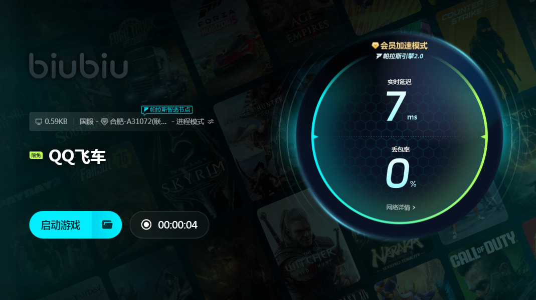 biubiu加速器能为QQ飞车玩家提供一个高网速,快速连接以及稳定持久的游戏环境,而且最主要的是,biubiu用于非常丰富的游戏节点,在各个节点之间可以通过智能分配技术,进行快速切换,所以玩家不用担心哪一个节点满了,自己需要手动切换,让玩家在不知不觉中打游戏而没有网络焦虑。现在为了让更多玩家体验到biubiu的极致加速后的游戏,新手玩家只要注册登录后就能获得24小时免费加速时长,完全没有门槛和限制内容。