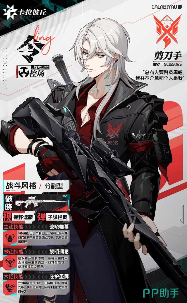 令是控场型角色,擅长干扰敌方视野与战术推进。他的主武器“破晓”是一把连发狙击枪,适合中远程架枪。1技能“光幕”可制造一道纵向屏障,遮挡双方视野,战术意义极大。大招强化光幕,能拦截敌方子弹并附加护甲增减效果。令的被动技能可探测敌人位置,配合觉醒技能还能为队友提供额外护甲。他的操作难度较高,需精准判断光幕释放时机。