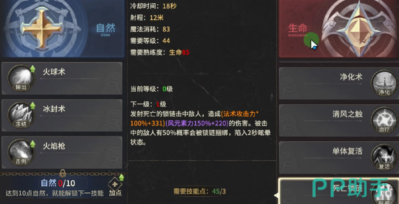 想要实现元素控制流,那么玩家这时候先要升级兵咆哮,借助冰咆哮来有效的减速,为后面的既能创造一定的输出条件。另外陨石天降可以给敌人造成大面积的伤害,火焰冲击主要针对的是单体敌人。元素护盾,这时候就是法师要自己保护好自己,简单来说就是在这个流派当中,法师有输出也有控制。