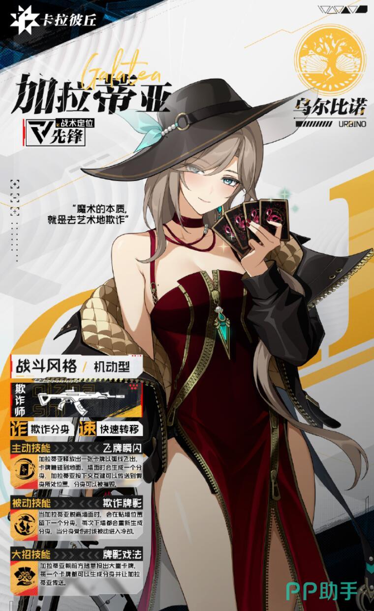 加拉蒂亚定位为“魔术师”,擅长利用分身进行快速位移和战术欺骗。她的核心玩法围绕卡牌分身传送展开——主动技能“飞牌瞬闪”可投掷卡牌生成分身并瞬移,被动“欺诈牌影”会在脱离墙面时自动留下可传送的分身,战术技能“致盲牌影”则能制造诱饵分身。大招“牌影戏法”可同时生成多个分身,实现全场快速转移。玩法上就是要通过频繁换位扰乱敌方视野,同时利用分身探测敌人位置,为团队提供情报优势。