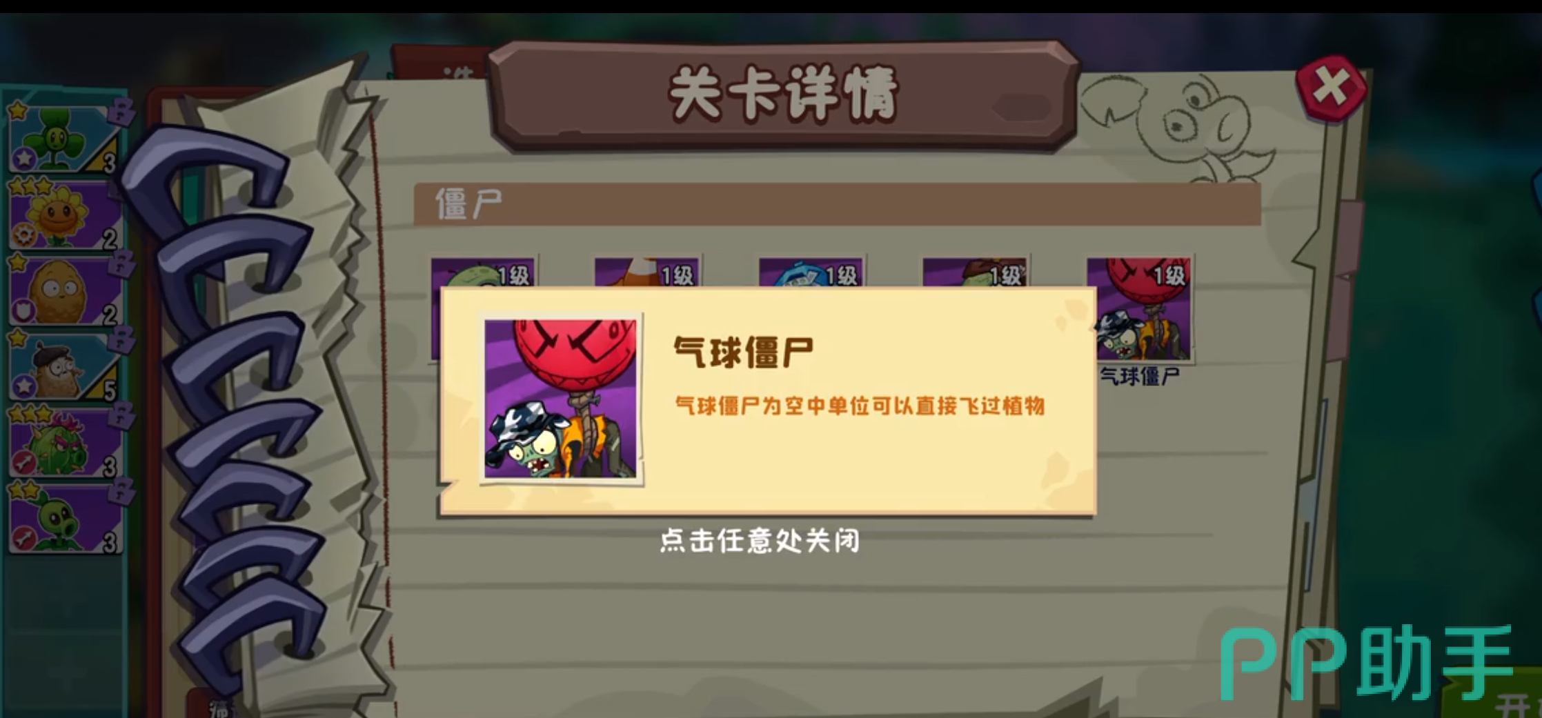 气球僵尸:气球僵尸可以直接利用飞行能力越过植物,不过想要克制它也不难,只要将仙人球和三叶草组合就可以了。三叶草的吹风能力配合仙人球的刺可以击破气球僵尸的气球,这样就能防止它们越过植物。