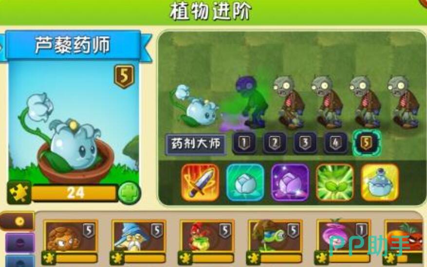 芦藜药师的核心是毒雾控场+持续DOT 。种下后朝正前方3行喷“毒雾弹幕”,每发弹幕让僵尸中“剧毒”(每秒掉8%血,最多叠3层,持续5秒),还能减速20%。打“机械入侵”这类机甲僵尸多的关卡,把它种在第3列中间,毒雾覆盖第2 - 4列,机甲僵尸被毒得持续掉血,再配合电能豌豆的电击,叠毒+电伤能一波清3行。
