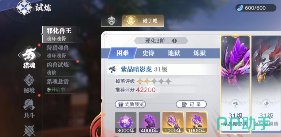 炼狱兽王中还会有一个炼狱宝箱的机制,如果在规定的时间内,玩家可以将炼狱级的boss打败,就能成功地吸收魂环。当然也有一个限制需要保证死亡的次数没有超过规定,而且每一次在开启时全部都会消耗对应的炼狱钥匙。