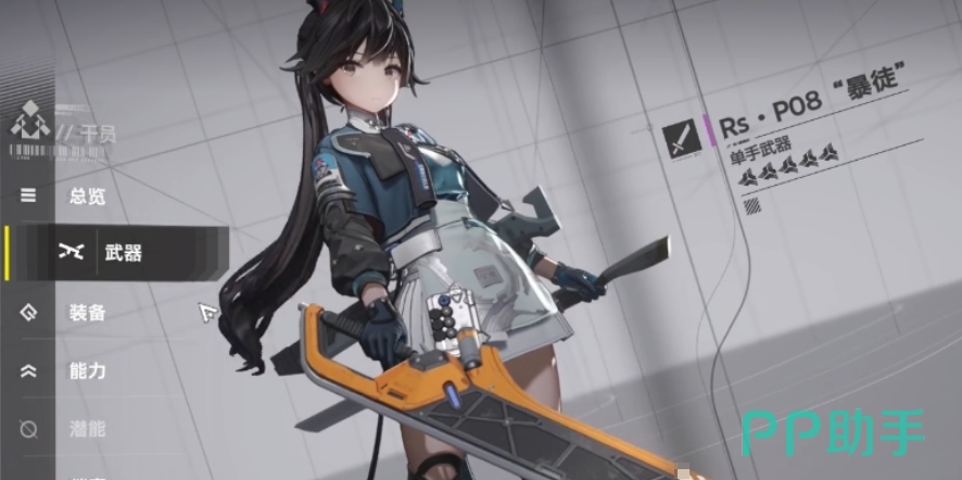 陈千语所使用的武器是单手武器,而她的专武名为Rs·P08暴徒,这是一把造型独特且极具魅力的唐刀造型武器,这把武器本身就有着非凡的天赋以及属性,相较于其他普通武器,其各项属性都有着大幅度的提升,当陈千语手持这把专武时,强度提升到能够在战斗中直接将对手一招击败,而从目前游戏中的实际情况来看,五星武器已经被玩家们抽出了不少,而在探索终末地的六星专武时,大家会发现这些专武比想象中的要专得多。