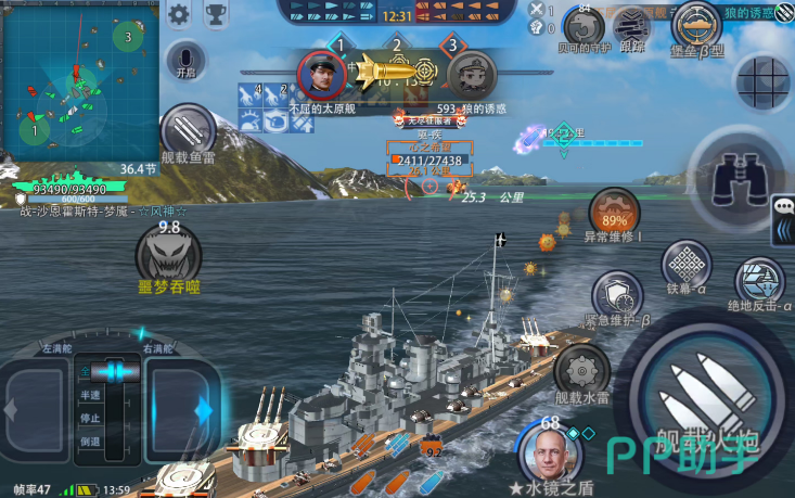 这是一款以第二次世界大战为背景的第三人称射击的海战竞技类手游,在游戏中玩家将模拟操作一艘战舰,使用舰上的各类武器与敌方玩家进行射击对战。该游戏收录了300多艘实名战舰,并将其大致分为了战列舰、航母、巡洋舰、驱逐舰和潜艇五类,每一类战舰都有其不同的特性,在5V5或者10V10的对战当中,玩家需要合理的选择战舰种类和战友配合作战才能赢得胜利。战舰的前进后退、航速、舰炮射击角度和高度、鱼雷的发射方向和密度等都需要玩家进行手动调整,高度还原真实的海战体验。