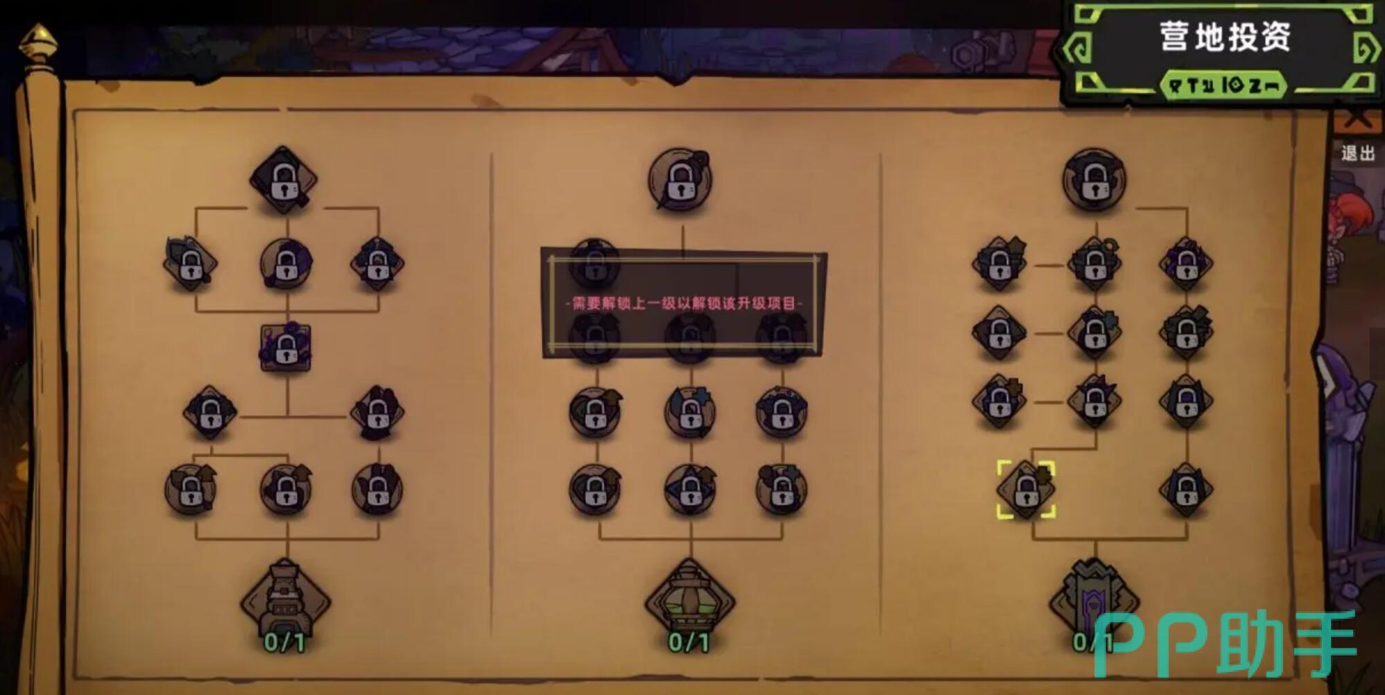 营地等级的提升完全依赖天赋解锁,每点一级天赋,营地等级提升1级,最高可升至66级。天赋解锁需要消耗金币,而金币的主要来源是击败副本BOSS后的结算奖励,普通小怪掉落较少。想要快速升级,必须优先选择高效通关的流派,如毒流派或恶魔弓流派,这两个流派即使天赋不足也能稳定刷图,适合新手积累初始资源,而噩梦难度下的金币收益更高,但需先通关普通模式解锁。