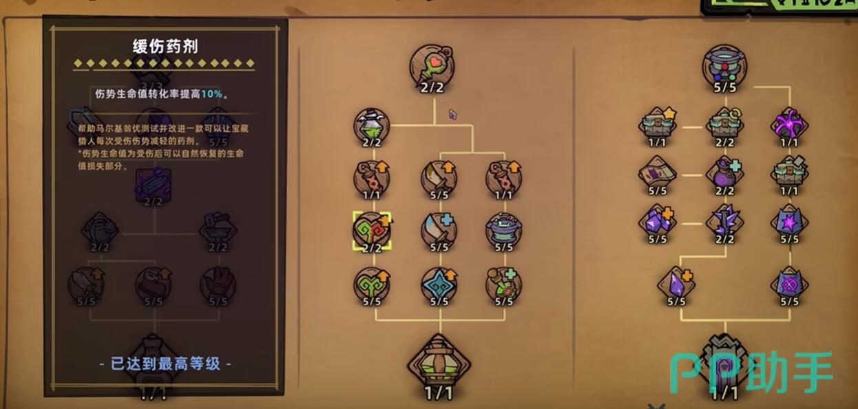 天赋的解锁顺序直接影响游戏体验,建议优先投资“盔甲熟练度”和“体质药水”,前者提升重甲生命值和轻甲暴击率,后者直接增加基础血量,大幅提高生存能力。“精细祛魅”天赋能保证拆解装备时100%返还铁锭,避免资源浪费。炼金术士小屋的“扩大的药剂瓶”和“缓解药水”可增强续航,适合中后期解锁。虚灵雕像的“以太坊国库研究”能提高高级装备掉落率,但前期收益较低,建议后期再点。