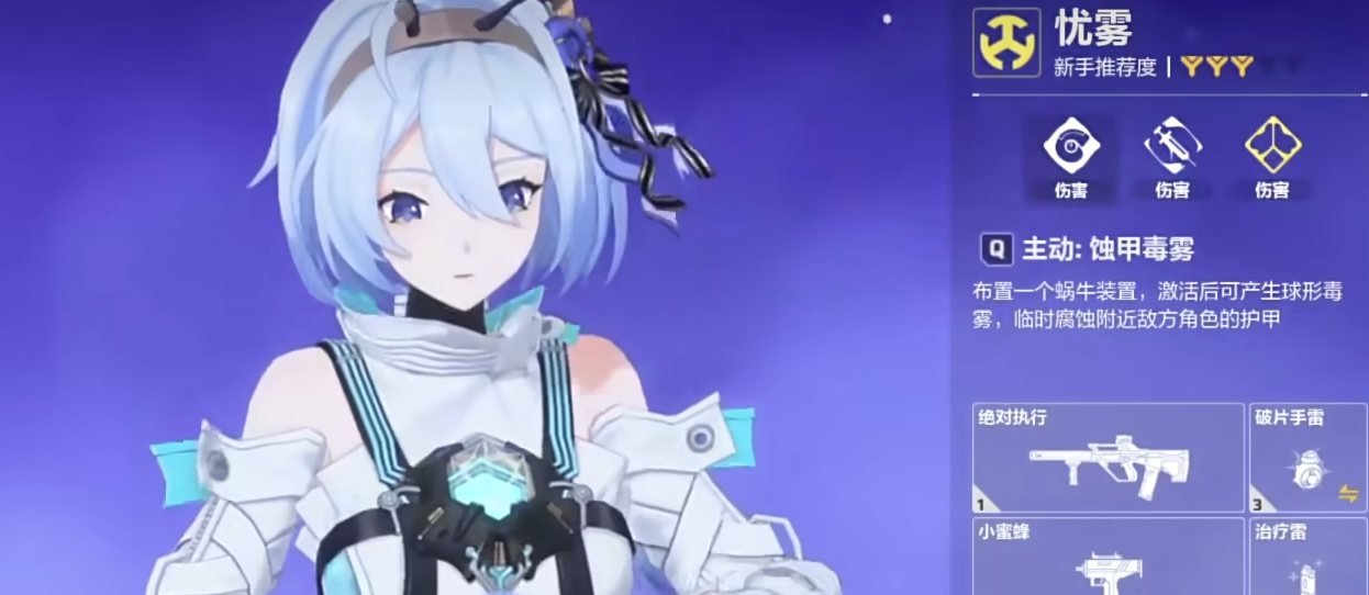 忧雾的被动“毒雾爆发”会在使用主武器,并对敌人的生命值造成一定量的伤害之后,对目标以及附近的其他敌人造成伤害,同时还会临时腐蚀掉他们的护甲上限,方便我方后续进攻。