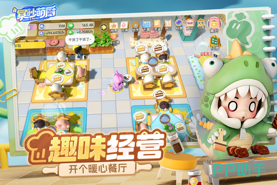 《暴吵萌厨》在主打烹饪的玩法基础之上,与众不同的将社交协作机制进行了加入,游戏除了针对场景,进行了目悦神怡的卡通风设计以外。还囊括了各种奇异缤纷的多彩厨房用具,并设计了多位灵动呆萌的美食女神角色,而且针对玩耍的氛围,都进行了令人狂喜不已的设计,玩家可以感受各种美食,其巧妙绝伦的生成步骤。