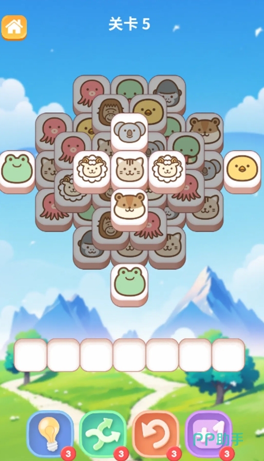 可爱风格的消除类游戏,只要在下方的空格里让三个相同的图标连在一起,就能一次性将它们给全部消除掉,等关卡里的所有图标都被消掉后就能过关。游戏存在着时间限制,若各位无法找到可消除的图标,或是在是时间归零前没能完成对全部图标的消除,只能再次重新挑战,并且游戏所设计的关卡越往后难度越大,很有挑战性。