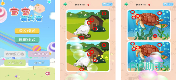 休闲好玩的找茬类游戏都可以帮助大家打发时间,尤其是宝宝主题的儿童向找茬游戏玩起来更加舒服,各种找茬关卡和难度极高的模式等待挑战,那么有趣的宝宝来找茬游戏下载哪个好?以下这些与找茬相关的休闲作品热度很高,新奇好玩的找茬模式呈现也为游戏加分不少。