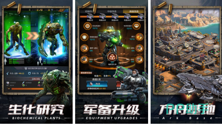 末日进化是拥有独特策略对抗元素的末日僵尸游戏,各种僵尸组合的尸潮军队会向人类基地发动攻击,你作为人类的领袖必须带领人类部队反抗,具备军备升级和生化研究等特殊的游戏模式,自由打造方舟基地保护人类的玩法也较为有趣,新鲜感十足的内容呈现令丧尸爱好者流连忘返。