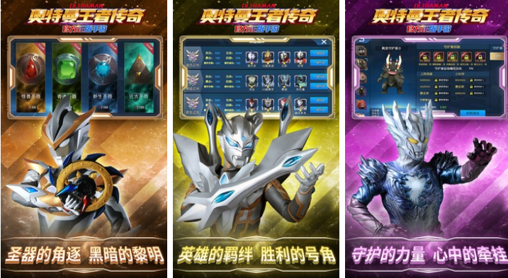 本作融合了集卡式操作和奥特曼主题的背景塑造,剧情呈现很饱满将奥特曼背景营造的淋漓尽致,各种造型霸气的新生代光之巨人等你挑选,神器培养和奥特曼强化等特殊培养机制别具一格,优秀的光影效果和流畅操作也是亮点,热衷玩奥特曼游戏的朋友下载奥特曼王者传奇玩个痛快吧。