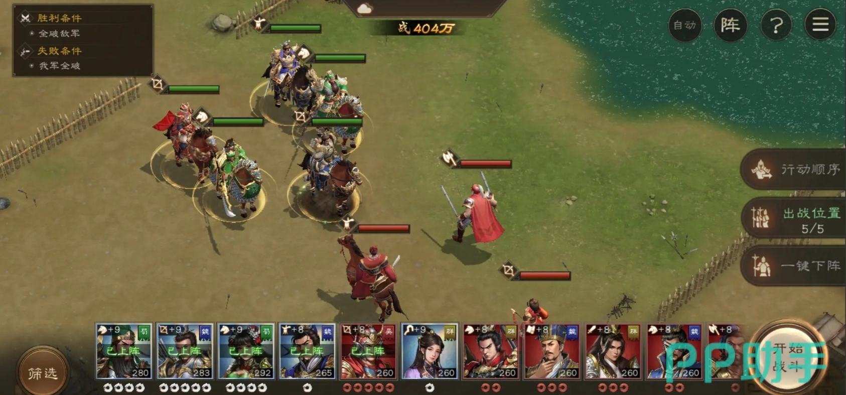 最后阵容中加一个吕布,吕布的力量、统率以及敏捷性皆为游戏中的一流水准,这也使得他具备了高攻击、高防御、高暴击以及暴力攻击的能力,当然他相对较低的智力方面存在一定的缺陷,基于这些特点,在为他搭配装备时,方天画戟、白银铠与赤兔马的组合堪称完美,吕布的飞将技能使其在初始时便能够攻击八格位置,所以方天画戟的使用能够将他的攻击范围最大化,使其在战场上能够对敌人造成大面积的打击。