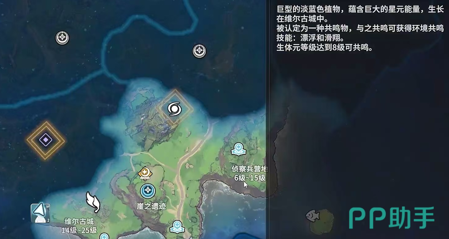 这里所说的飞行指的就是漂浮飞行,是游戏中环境共鸣的一种,获取其实并不算困难,主要是使用有一些小技巧。大家需要先来到维尔古城附近的英雄草,英雄草是一种巨型植物,里面蕴含着巨大的星元能量,是一种共鸣物,与之共鸣可以获得环境共鸣技能漂浮与滑翔,生体元等级达到8级之后就可以共鸣,这就是大家进行飞行的来源。
