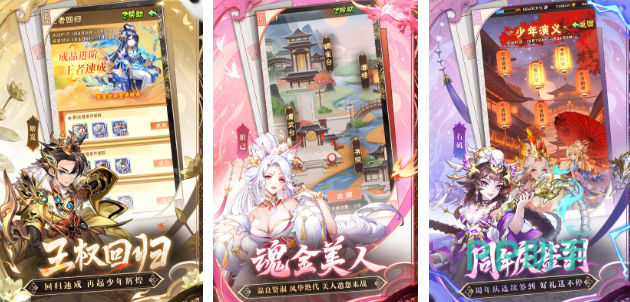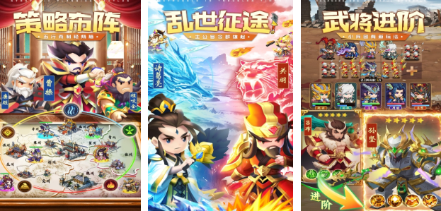 一款三国策略放置类型的手游,会有效传承经典的卡牌玩法,还会有兵种克制。所有的武将全部都会化身为可爱的形象,可以搭配士兵作战,在视觉上就有一种不一样的体验。除了这些玩法之外,还有兵种合成的玩法,可以一键合成一键升级,比较轻松解压。还能让大家享受千变万化的策略,感受经典的攻城玩法。