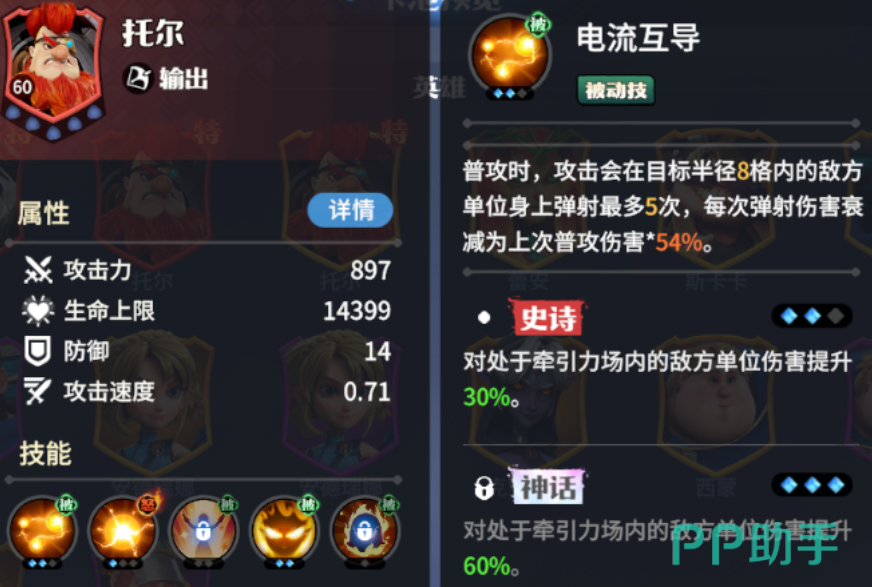 托尔:拥有怒气值的技能,可以对一定范围内的敌人造成高额的伤害,它比较适合快速的清场,普通攻击的弹射机制在敌人密集的时候,可以创造出高额的输出伤害,另外它还可以搭配决斗时刻,让他的怒气值大幅度的上升,目前托尔被广泛地运用在pve副本以及pvp团战中。