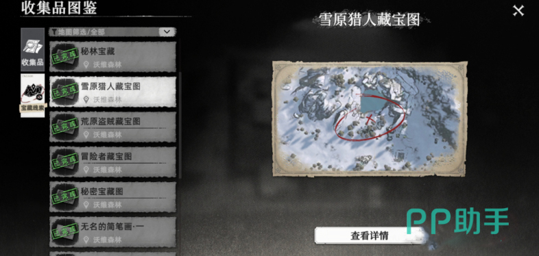 当大家有藏宝图了之后就可以去寻找宝藏了,首先是秘林遗迹和雪原猎手。这两个区域是核心藏宝点,优先探索;部分宝箱需破解环境谜题(如移动石块、点燃火把)才会显现,另外在南部瞭望塔东南300米沙洲,低潮时段可挖掘古代文明遗物,可能触发隐藏宝藏。