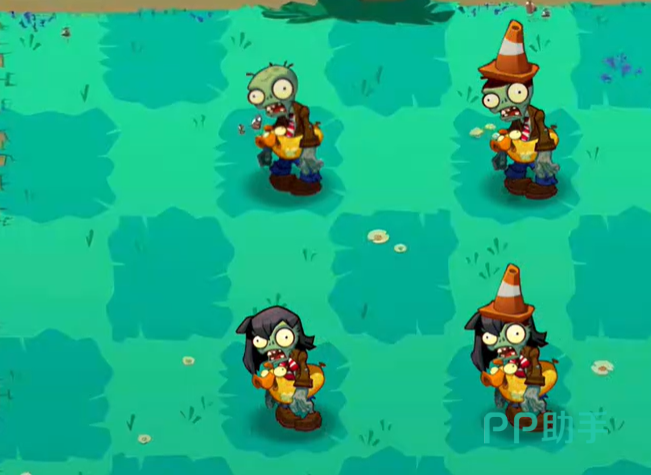 首先就是普通僵尸,这类僵尸身上的服装可能会有一些变化,但是整体形象来看的话基本上都是手无缚鸡之力,也是做容易击杀的一类僵尸,这类僵尸使用任意的植物都能将其消灭哦!