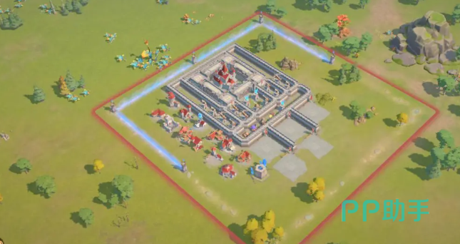 布局方面,记得将城墙和防御建筑一定要放在外围,抵抗敌军的入侵,资源建筑放在比较外围的地方,来分散敌人的火力,将城区的范围给缩小,我们最重点的主堡一定放置在最中间,并安排好陷阱在主堡周围。