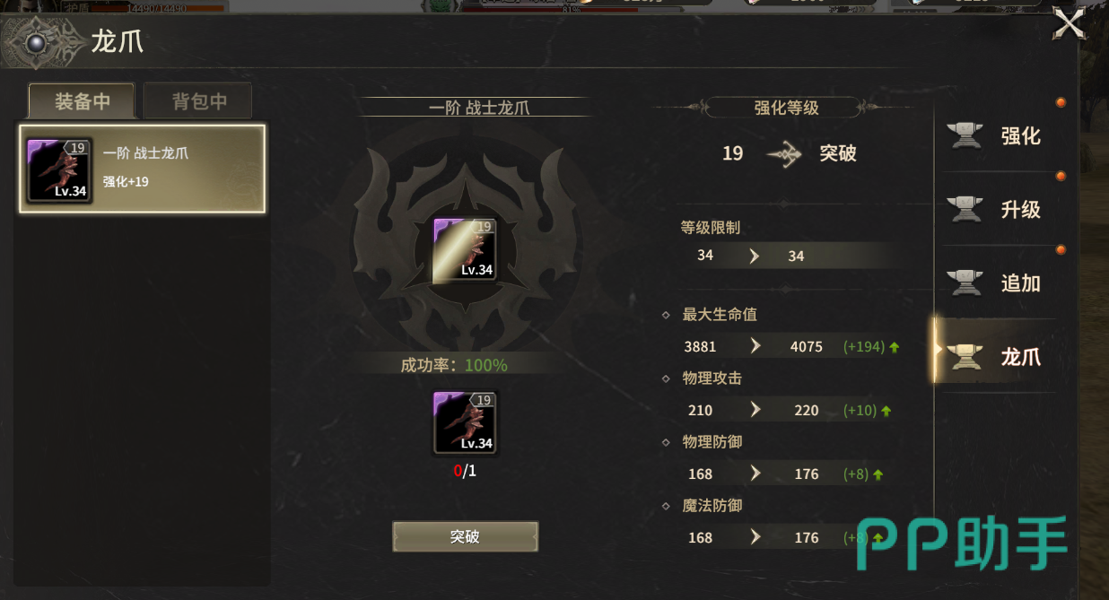 最后除了基础升级和强化,龙爪还能进行属性追加,这个需要用到 “生命宝石”,宝石能在恶魔难度的日常副本中概率获取,拥有一定量后,在升级界面选择属性追加选项,就可以追加如生命上限提升等额外属性,属性追加同样有成功率的问题,大家可以通过佩戴增加幸运的饰品来提升幸运值,从而提高追加成功的概率。