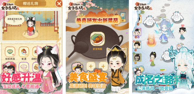 某某朝的女子乐坊游戏中,以架空历史为背景,凭借精美的古风卡通画面,完美勾勒出古代的唯美景致与人物风姿,玩家将化身女子乐坊坊主,开启一段充满挑战与惊喜的经营之旅,乐坊布局搭建完全由玩家自主决定,打造独一无二的乐坊,招募古代美人加入乐坊是一大乐趣,西施的温婉、王昭君的异域风情、貂蝉的刚柔并济等,将她们招致麾下,培养成为琴棋书画、诗词歌赋样样精通的全能艺人。