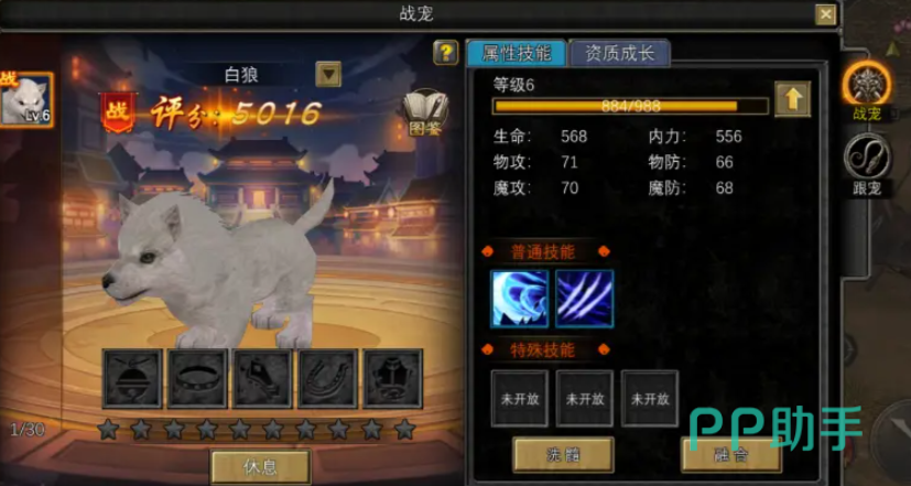 资质包括力量、敏捷、体质、智力和精神,每一项都会影响属性,大家可以通过洗练来进行突破,不过洗练过程是随机的,有需要的可以用“九转金丹”来对1到2条想要的属性进行定向洗练,最后是融合是将两只同系满级宠物进行融合,融合后有概率觉醒隐藏技,但也有一定失败的风险。