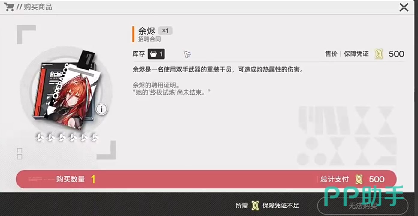在获取相同的干员时,会转换成对应的信物和保障凭证,信物可以用来给对应角色强化升星,“武库配额”可以用于武器卡池的抽奖,保障凭证则可以拿来兑换抽奖道具,以及一些六星角色。