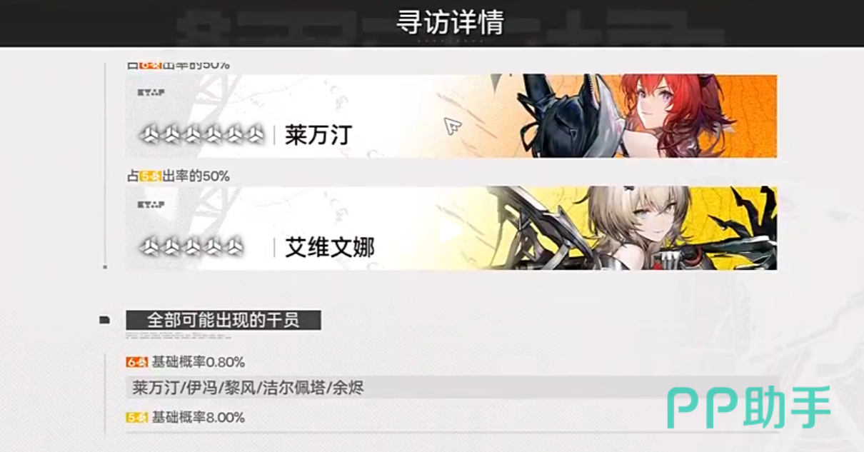 首先来讲一讲干员池,干员最高是6星,120抽必定该卡池中的限定6星,每80抽得保底6星,每10抽能保底一个五星,每次大家获得干员的同时会同时获得“武库配额”,6星能获得1500武库配额、五星获得500、四星获得50。