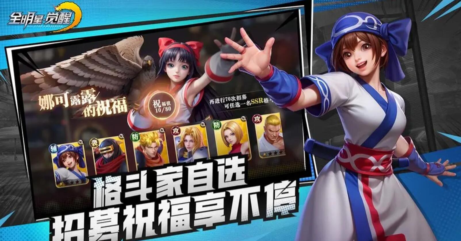 全明星觉醒是什么游戏?小编为大家来介绍一下,其实全明星觉醒是一个由日本SNK官方正版授权的策略卡牌手游,游戏以SNK格斗宇宙为背景,集结拳皇、侍魂、合金弹头等超经典的50余位IP角色如八神庵、草薙京、不知火舞等,玩家化身时空指挥官,通过卡牌收集、阵容搭配及属性克制策略,在沉浸式3D格斗之城展开冒险。