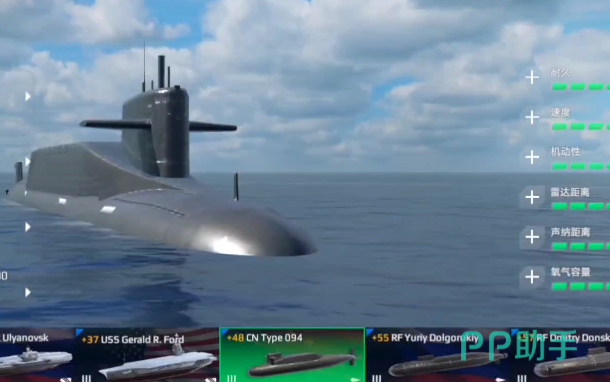 除了上面这两个之外,还有战略性潜艇,这一类潜艇比较推荐的就是096型潜艇,这个潜艇可以下潜600m的深度,是隐蔽性比较强的一个,同时还可以携带巨浪三导弹,借助这个导弹能进行远程攻击,北风之神导弹,是火力非常凶猛的一个,可以搭配布拉瓦导弹,给对手带来强烈的攻击,但需要注意的是,这一类导弹需要避免和对方正面交锋,否则很容易暴露位置,玩家也可以选择094潜艇,这是非常适合新手使用的,整体能力比较平衡,除了潜射导弹之外,还会搭配两组鱼雷发射管,整体的氧气续航量也是足够的。