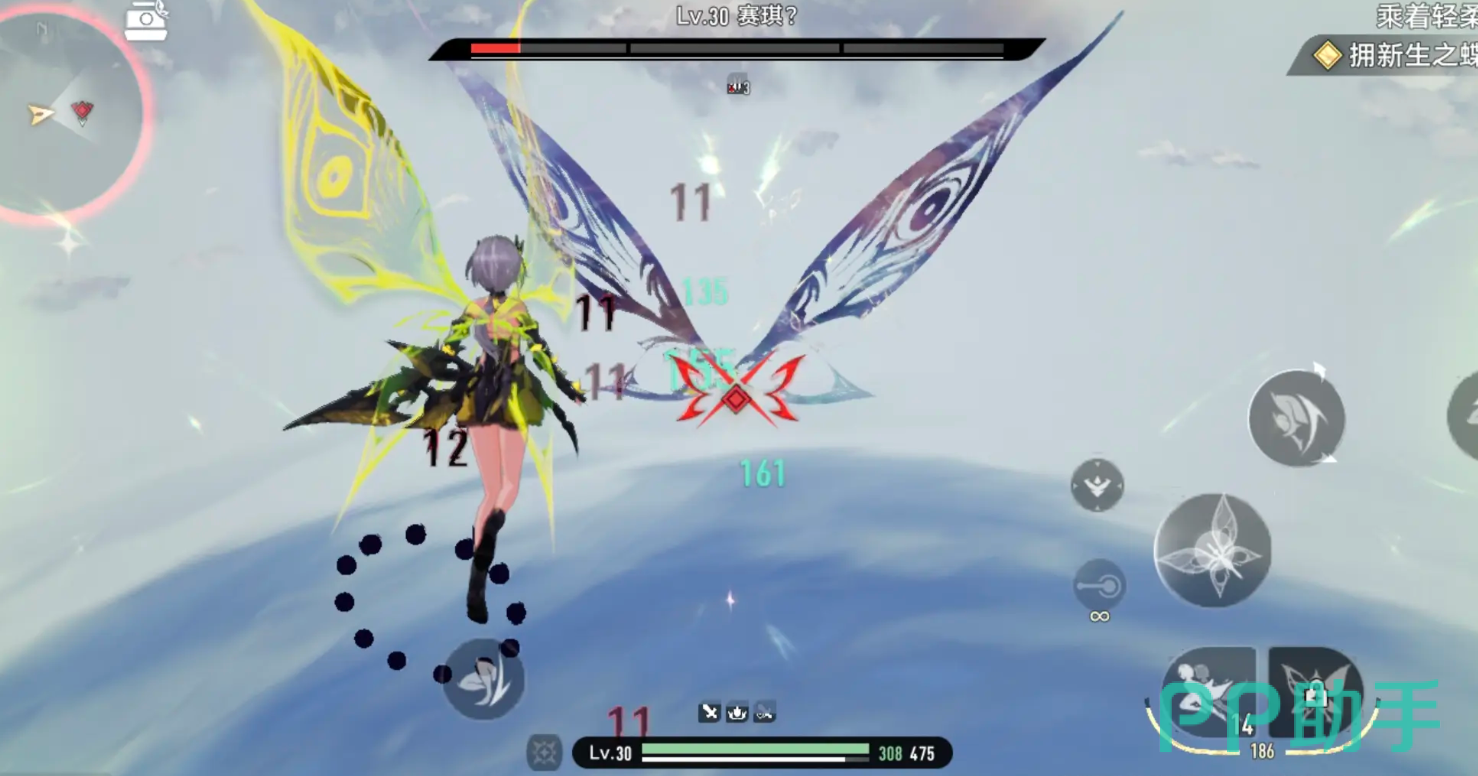 二技能“萤草为萤”,赛琪可以直接进行变身,随后进入到飞行状态,同时强化战技和普攻,战技可以发射16束追踪磷粉,对敌人施加快速标记,从而触发连续伤害。
