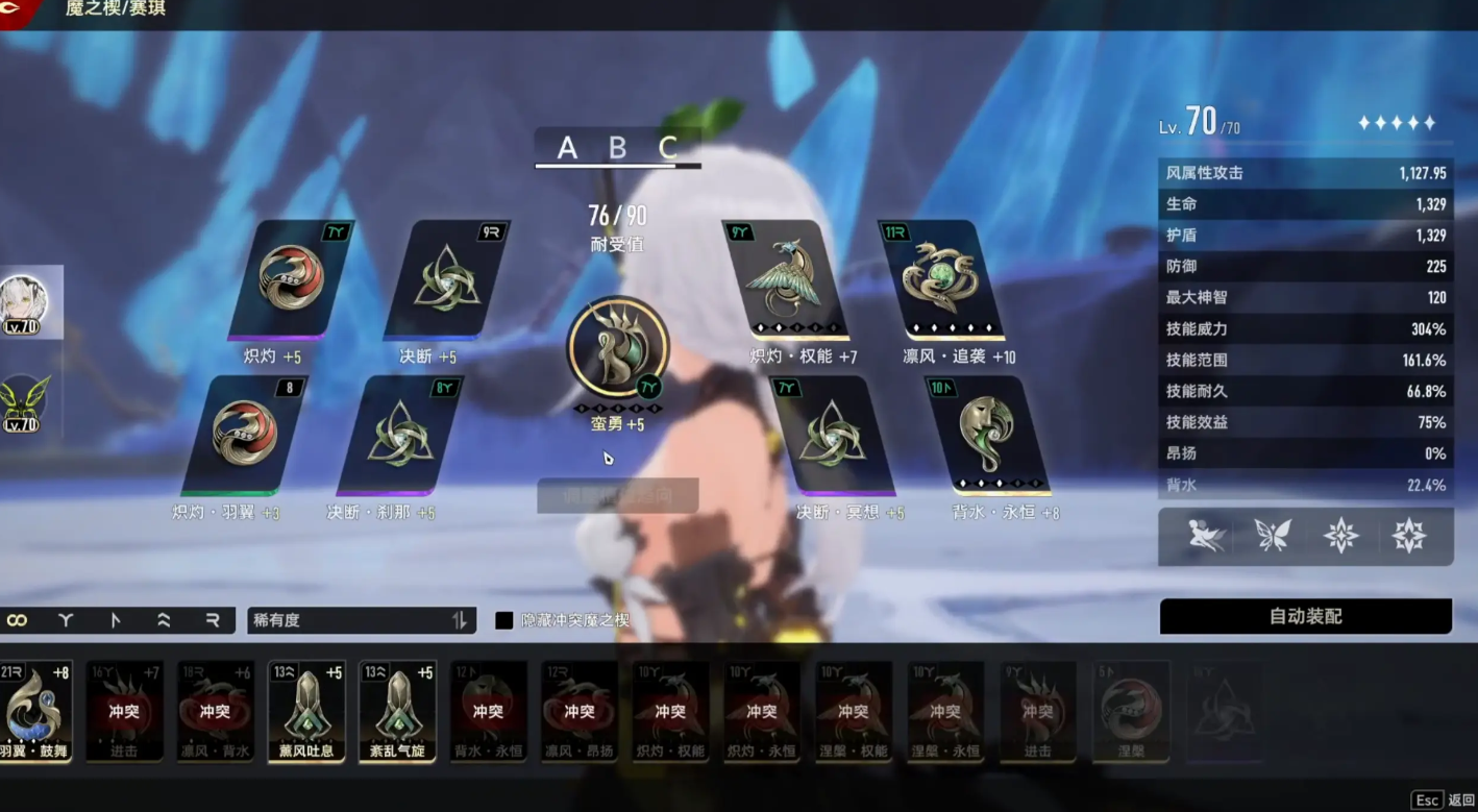 魔之楔的选用上面,首选“海妖之羽翼.鼓舞”,可以增加64%的神智上限,随后,玩家在增伤道具的选用上面,可以选择“白首之凌风”,增强护盾伤害,以及范围的输出能力。