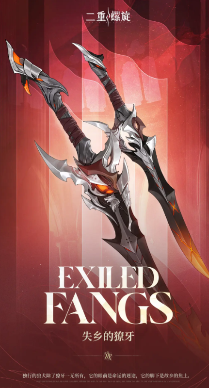 失乡的獠牙在游戏当中,是一个五星级的双刀武器,它的特点是有着“一轻一重”的双刀结构。
