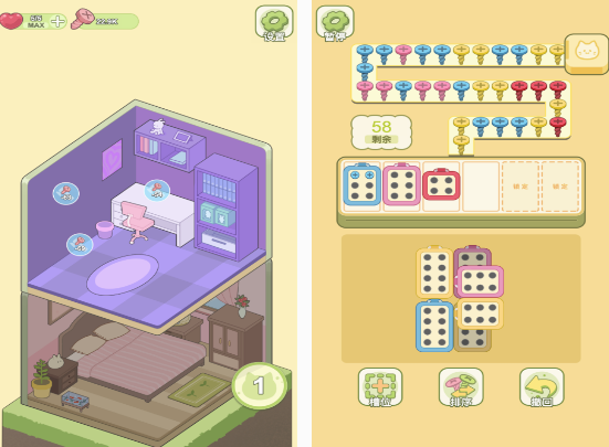 这是以装扮梦幻小屋为主要玩法的手游,除了里面有现实生活中比较常见的家具,甚至是装饰品,还能通过简单闯关的方法,来获得装饰品,用来对小屋进行装饰。在孩子玩游戏的过程中,无论是想要把屋子打造成任何颜色,或者是任何风格,需要在进行闯关的时候,发挥自己的正确操控能力,通过获得的相应道具以后,可在装饰的过程中更顺利。