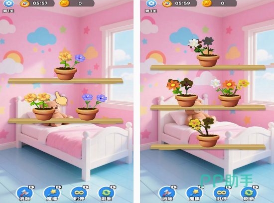 这款休闲类型的手游,它其实是以花朵为主要消除玩法的,在经营花朵家园的过程中,可看到各种各样花朵的颜色以及温馨,又浪漫的画面表现。要在花盆中,通过种植三个一样的花朵,就可达到消除的效果。不仅具有特别简单的玩法,也可帮助孩子在玩的过程中,发挥自己的动手能力以及智慧。还有很多可爱的小动物,包括小兔子蜜蜂等。