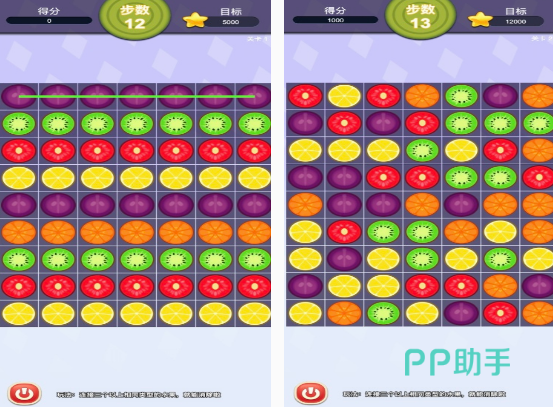 这款以各种颜色的水果为主要消除玩法的手游,有着特别简约的画面,因为里面的水果,并不是大家常见的立体的,而是将所有的水果进行了切片以后,所显示出来的图片,利用将三个以上的水果,进行连接以后来完成消除的目的。由于在玩的时候每一个关卡,都有目标分数以及要求的部署,所以必须要在玩的时候开动脑筋。