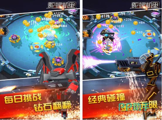 这款以陀螺机甲,展开与boss之间对战的战斗手游,也可通过对陀螺进行合并的方式来升级,当陀螺的等级越高的时候,与boss展开对战的时候,也能获得更好的成绩。具有真实的3d效果,以及非常好的画面表现,里面的机甲战士,还可通过boss召唤的方式,展现出每个机甲所具备的实力,也属于上手非常容易的,可选择不同的陀螺进行合成,然后拖动进行战斗。