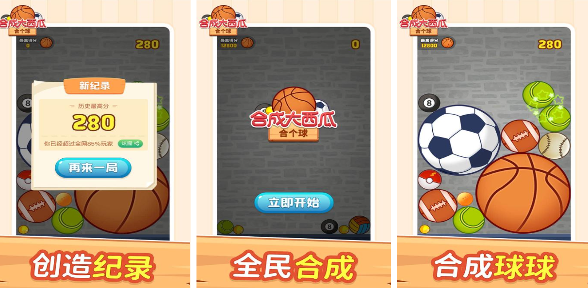 本作是款能够合成小球球的单机竖屏下落式游戏,经典好玩的下落机制和灵动的操作设定都是亮点,玩家要控制小球下落的速度和朝向,通过触碰各种小球完成合成的操作通俗易懂,篮球、保龄球和网球等众多球球都可以合成出来,轻松减压的合成主题操作令人印象深刻,不断合成升级球球带来的满足感也令人着迷。