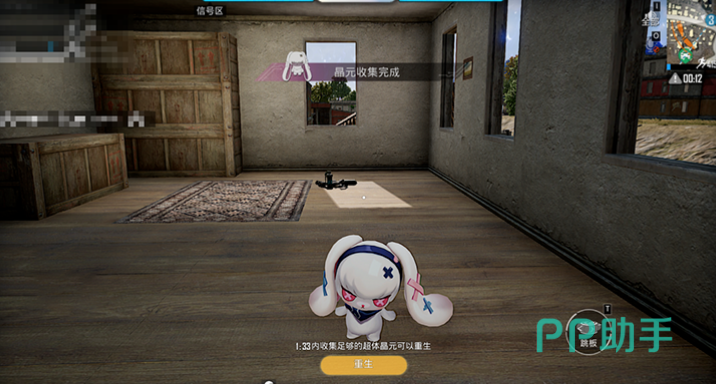 第一次被淘汰切换到萌兔形态,收集500个超体元就能重生,切换为人形态拿着枪支继续战斗,后续每次被淘汰重生需要收集的超体元数量都会翻倍,到8000个封顶,他的主动技会在脚下或者前方投掷一个跳板。