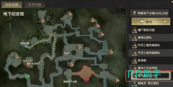 传送后直接前方坐标204,276处,不想自己跑图的,也可以打开当前地图,点击魔物在里面选择暴风骑士团小队,来自动寻路,寻路结束后在附近就能看到灾民了,同样上去对话任务就到此完成了。