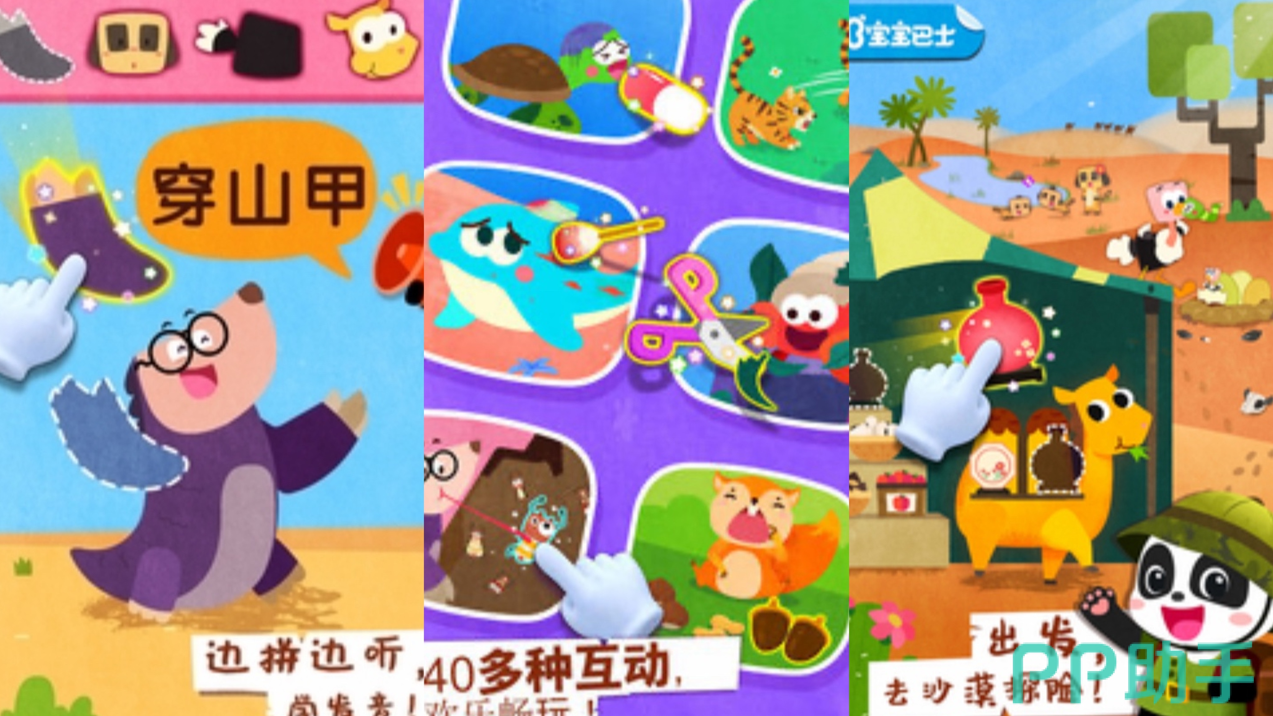 欢迎大家来到《宝宝动物世界》!这是专为宝宝们打造的一款益智类小游戏,这里面包含了40多种互动玩法和20+的动物认知手册,宝宝们可以通过不同的互动方式来认识各种各样的动物。同时,游戏还通过一些有趣的剧情来帮助宝宝们锻炼一些能力,比如救助海底动物,帮助它们清理伤害和海洋垃圾可以锻炼宝宝们的爱心以及环境保护意识。游戏画面非常简洁,整体画风也很可爱,有需要的小伙伴可以点击链接进行下载哦!