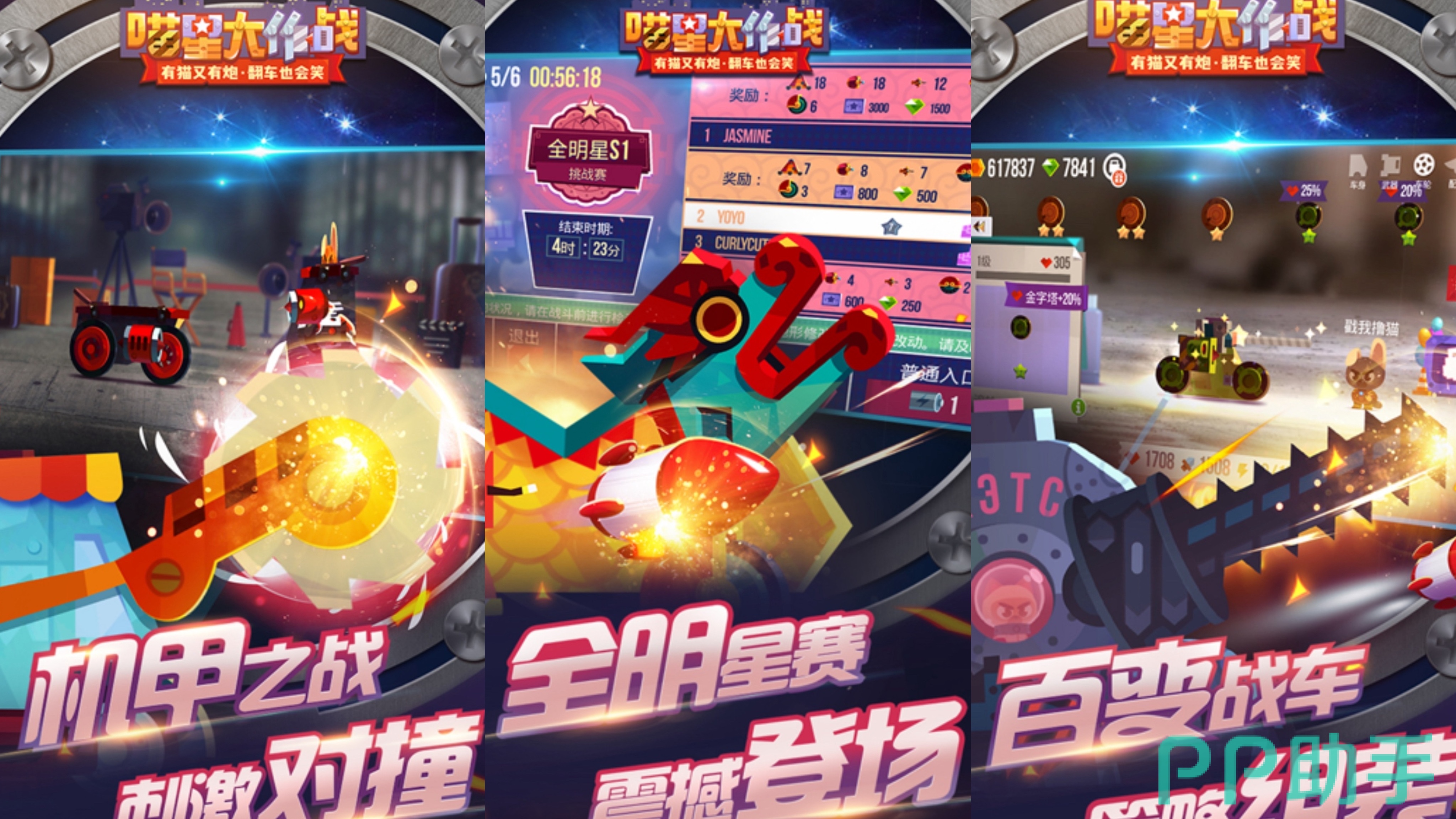 《喵星大作战》是一款非常有趣的策略休闲类手游,在游戏中玩家将化身为喵喵工程师,去收集各种零件并且将它们组装成为自己的战车,去和其他的喵星工程师们进行碰碰车大战!游戏采用了3D引擎技术,画质感情,特效炫酷,玩法新颖,收获了大量玩家们的喜爱。而且游戏节奏非常快,一场对决有可能只需要10秒,非常刺激。同时游戏采取的是段位制,段位越高,获得的零件就越优秀,战车的战力也就越高。